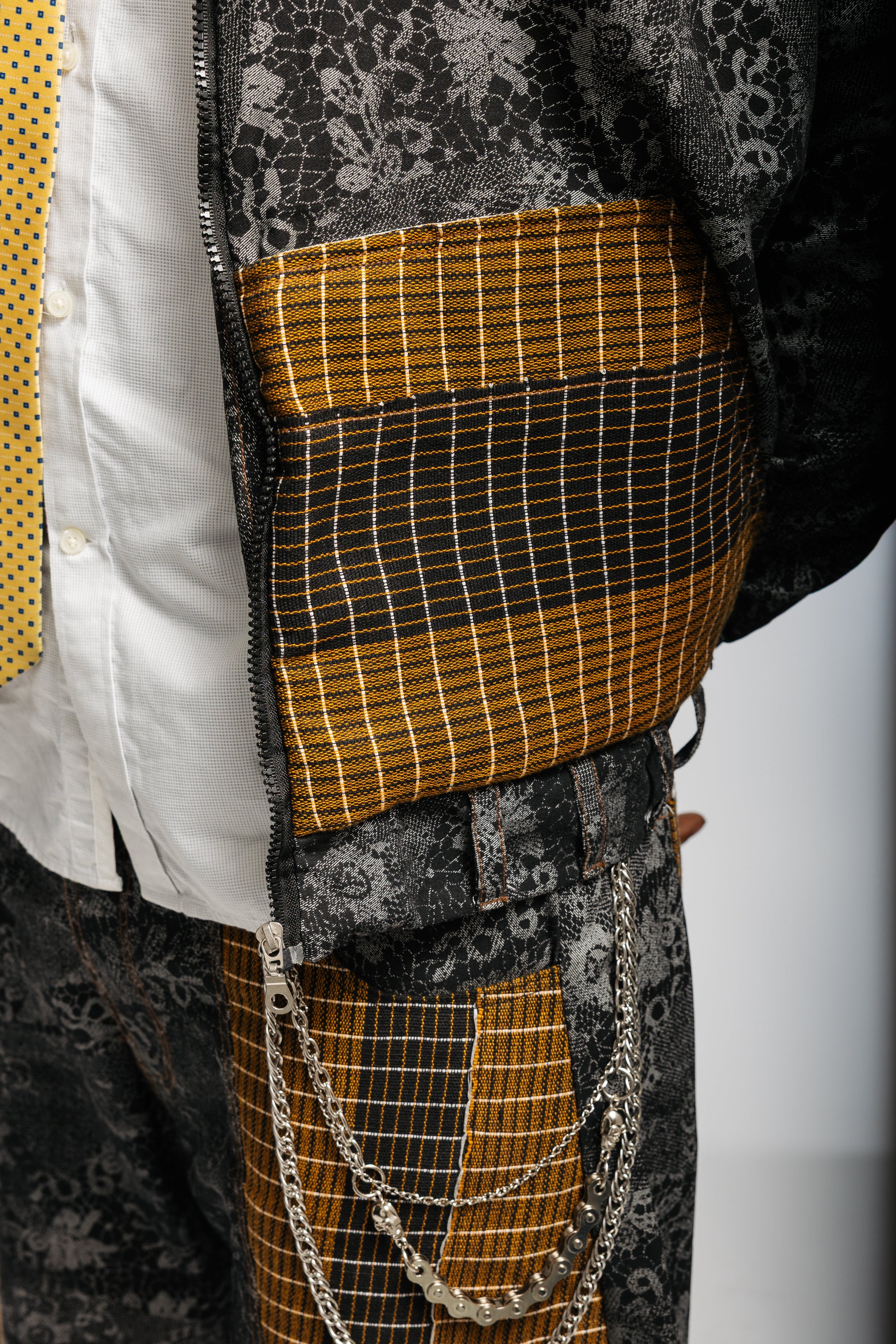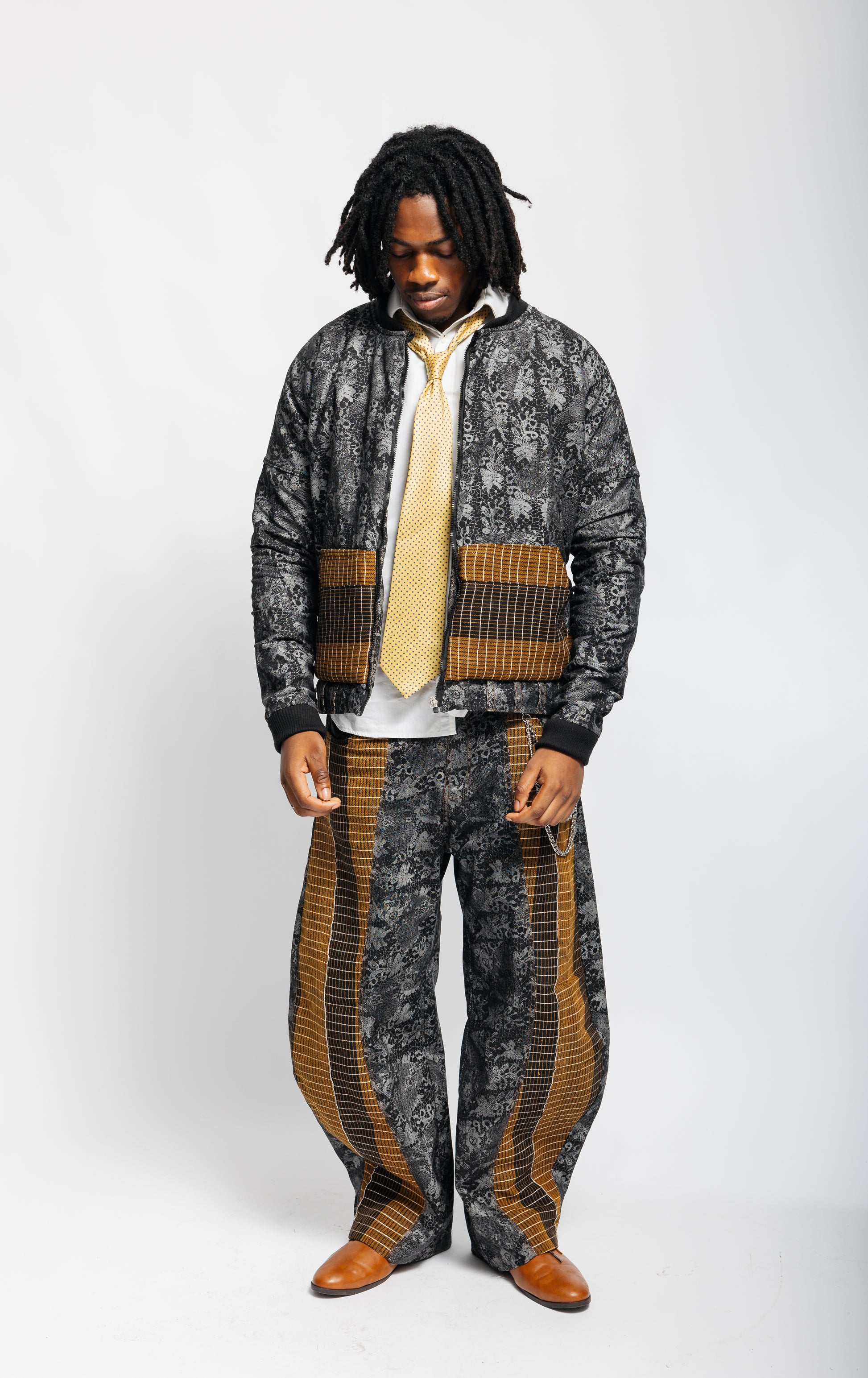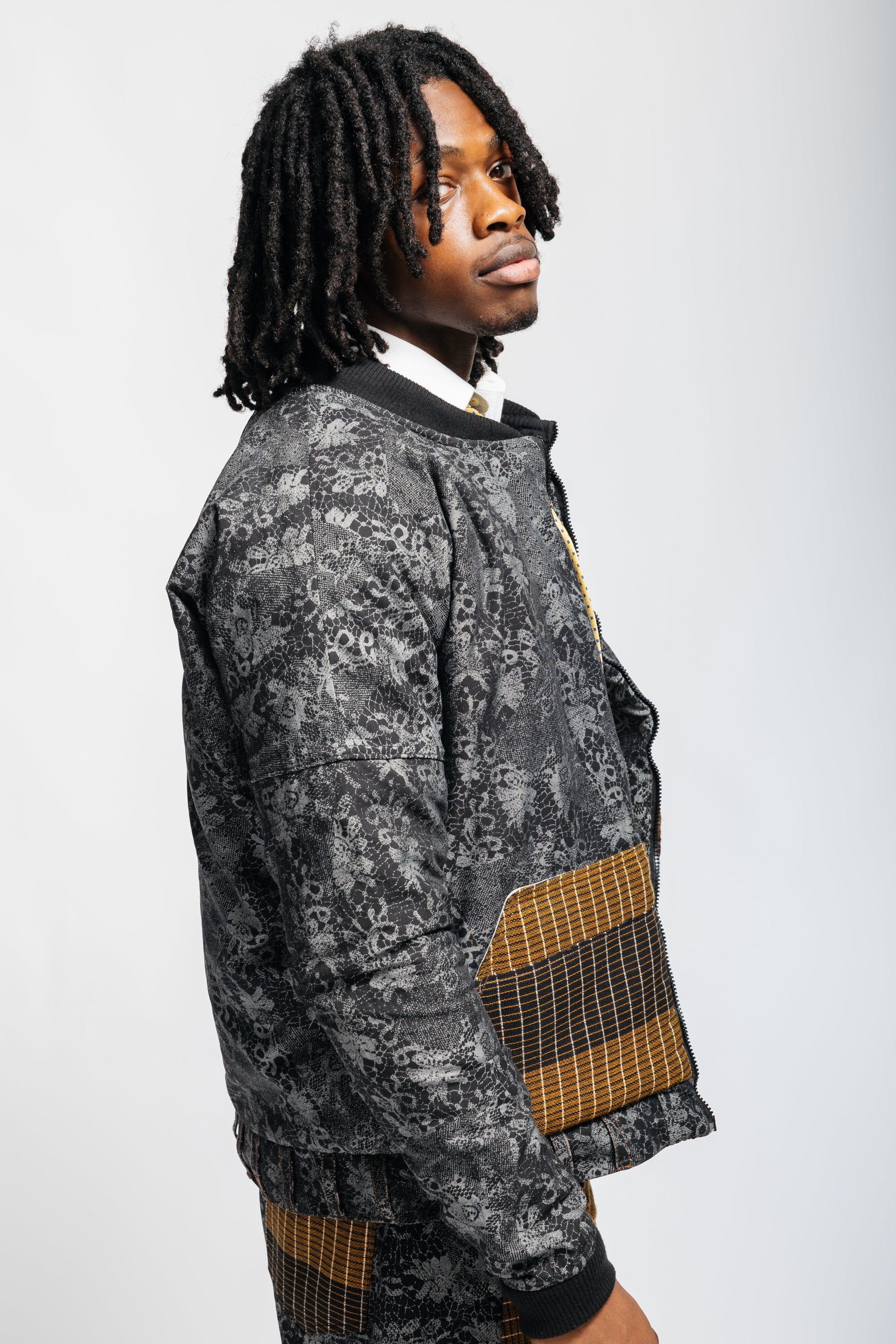 Elevate your style with our unique denim and Asooke bomber jacket. This standout piece combines the durability and versatility of denim with the luxurious, intricate patterns of traditional Asoke fabric. Perfect for layering, it offers both warmth and a fashionable edge. Designed to be gender-fluid and sustainable, this bomber jacket is a must-have addition to your wardrobe for making a bold statement.