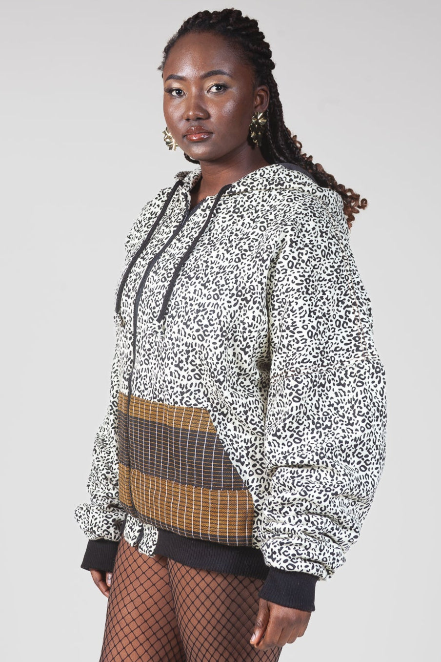 Elevate your style with our unique denim and Asooke hoodie. This standout piece combines the durability and versatility of denim with the luxurious, intricate patterns of traditional Asoke fabric. Perfect for layering, it offers both warmth and a fashionable edge. Designed to be gender-fluid and sustainable, this bomber jacket is a must-have addition to your wardrobe for making a bold statement.